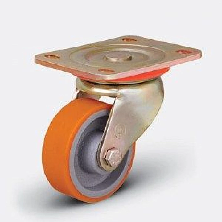 Колесо большегрузное полиуретановое поворотное (обод чугун, кронштейн стальной оцинкованный, контактный слой полиуретан, в оси шариковый подшипник)