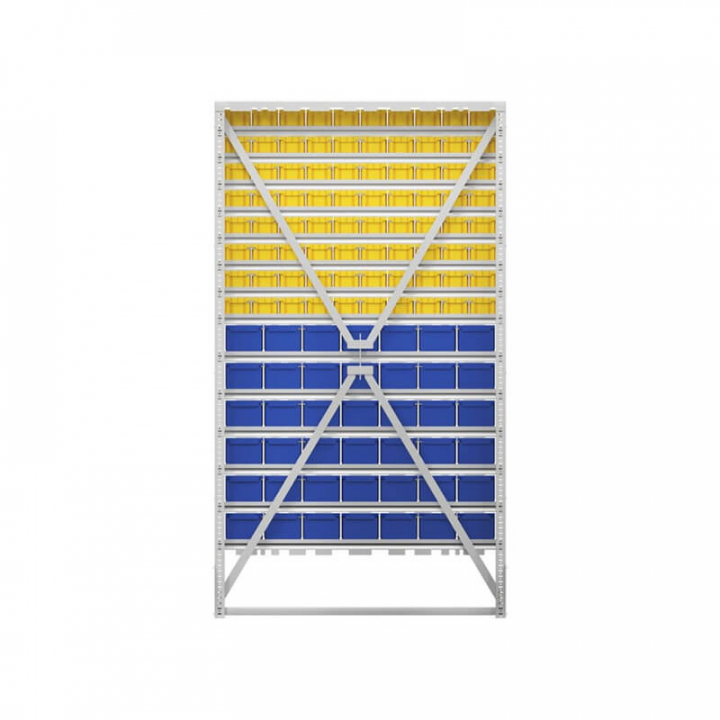 Серый (рама), желтый/синий (ящики)